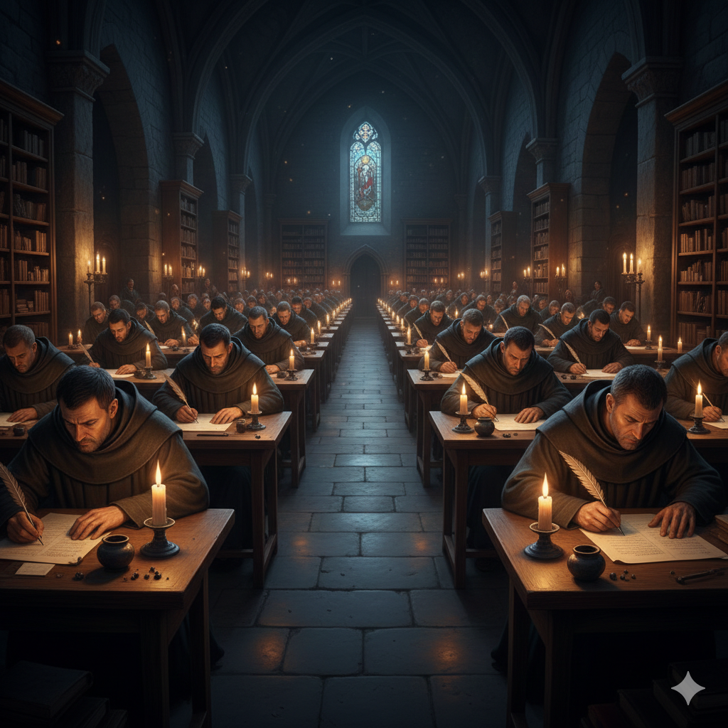 1. 1296-1297 (Isla de Wight): Conocemos a Clarissa Lightburn, una joven cuya huida de la abadía de Vectis mientras estaba embarazada de un escriba resulta ser el catalizador de todo lo que está por venir. Es aquí donde entendemos por qué la biblioteca original terminó: la cadena se rompió, pero no se extinguió.