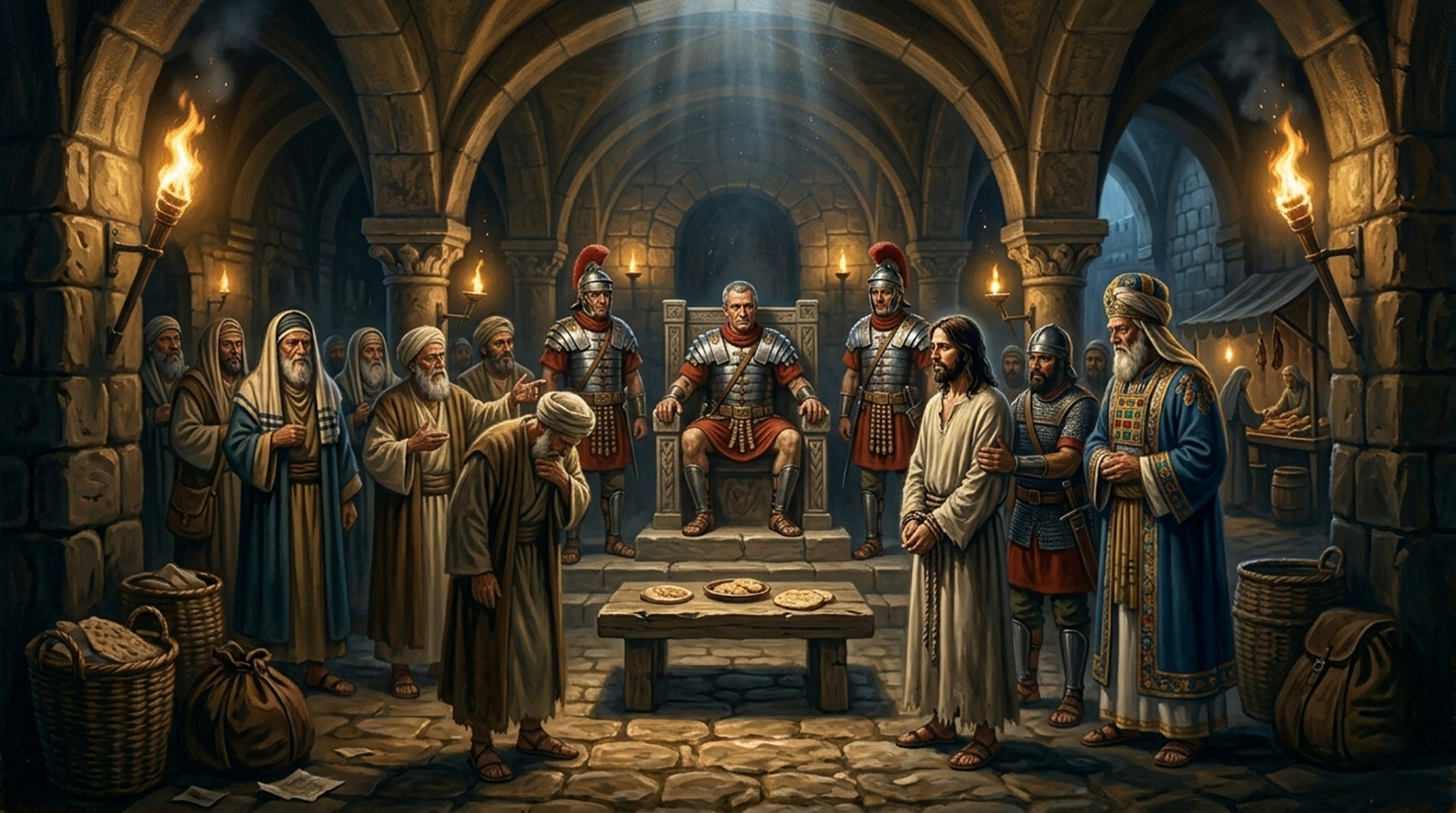 Jesús es llevado ante Pilato, representante de Roma, encargado de mantener el orden.